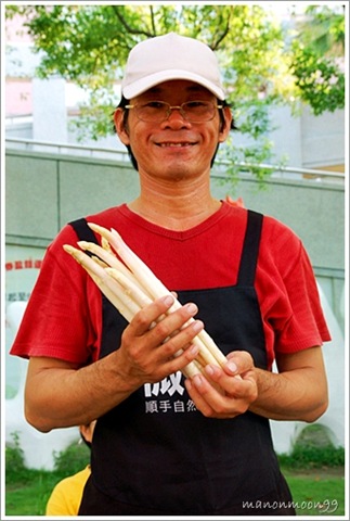 能收獲這樣的白蘆筍讓他覺得興奮與滿足,有機農夫耕耘的辛苦總是比慣行農法要來的艱難許多倍,不能使用殺草劑(避免化學殘留及破壞生態),不能使用農藥及化學肥料.從憲輝開始上課接觸有機到現在也7,8年了吧,如果把當初投注的成本心力換算進菜價裡,每斤2,3百元都買不到吧~現在的笑容裡其實埋藏著許多辛勞與執著~