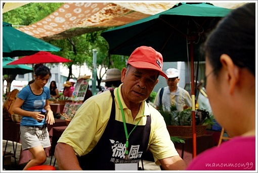 市集裡已經88歲的阿嬤,懷恩有機農場陳金和大哥的岳母,她提到她們小時候的耕種方式根本沒有化學農藥跟化肥,多年來吃有機飲食的阿嬤,身體仍然是十分健康,她經常到市集來和大家分享有機飲食的方法.