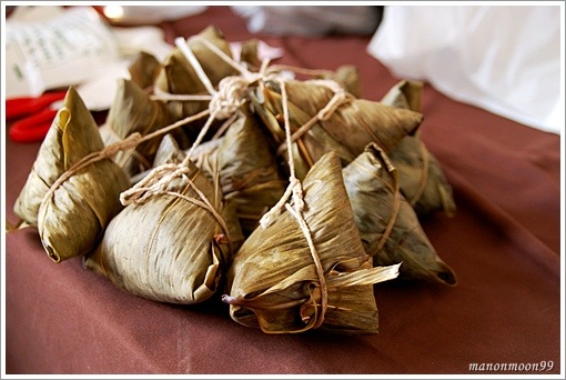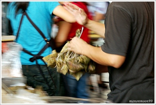 加上端午節到了,大家排隊買粽子應景過節,以往一棵一棵賣的,今天幾乎都是一束一束買,攤位分成了兩邊,一邊是預約取貨,一邊是現場購買。